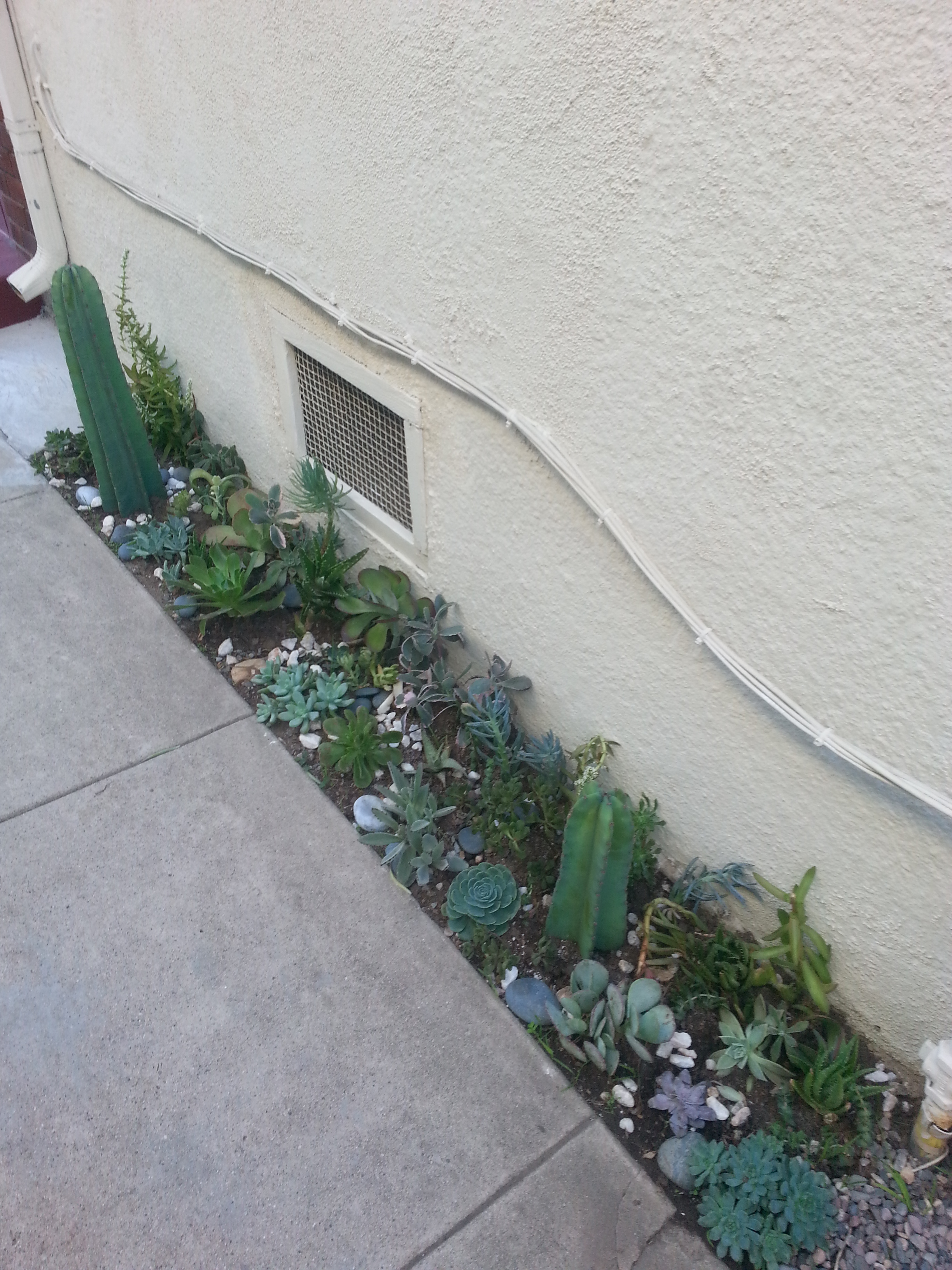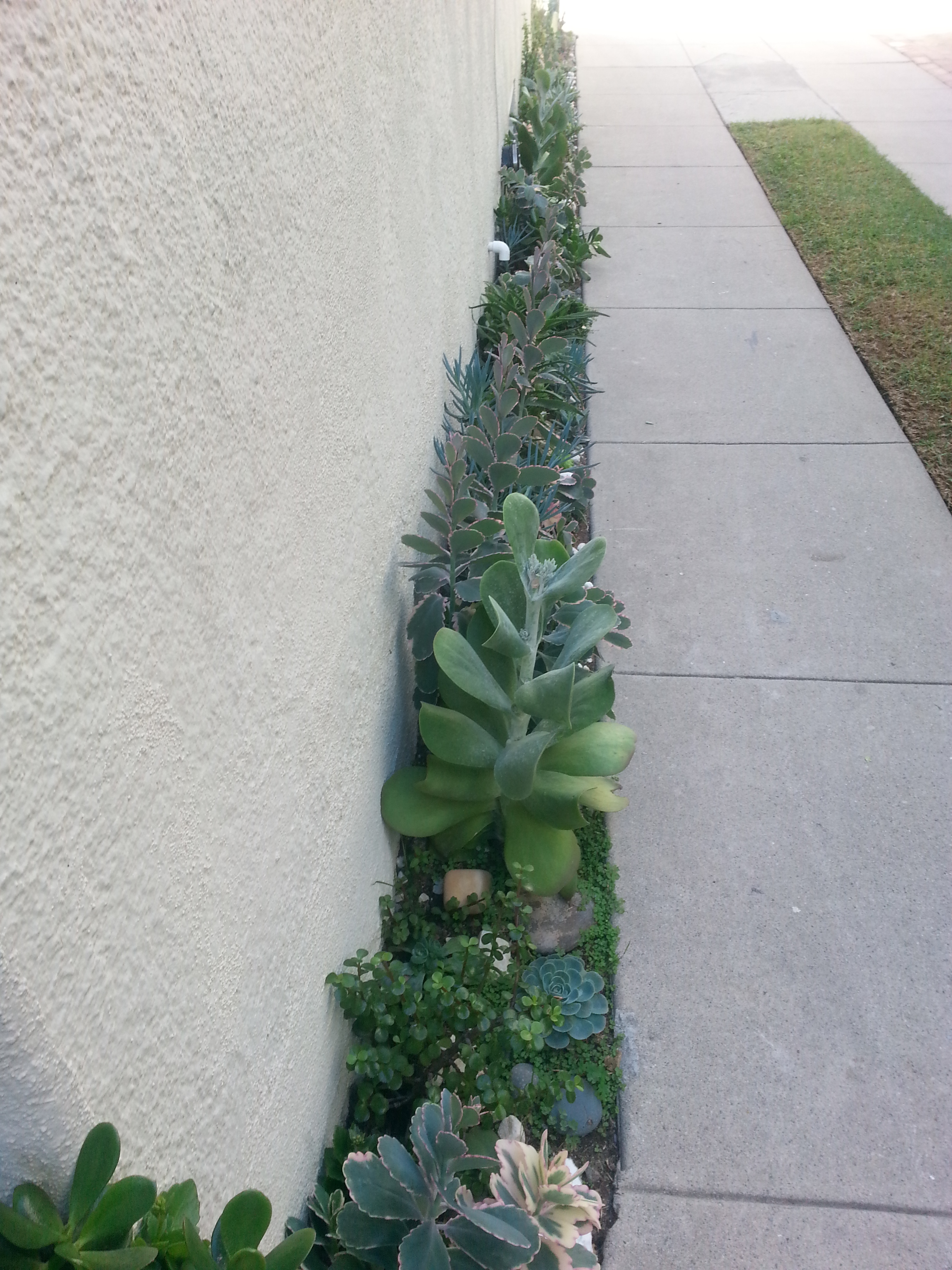 “Succulents darling and I have plenty.” Turns out that succulents are drought resistant, meaning don’t need much agua and they don’t need to root to be planted. One can chop or hack a succulent or cactus anywhere on it and basically shove it into the ground. Yay. Week after week she brought me recycled grocery bags full of cuttings, that I caressed and carefully placed into the dirt, sprinkled rocks and pebbles and shells from my beloved east coast beach trips and before I knew it – I had a garden.